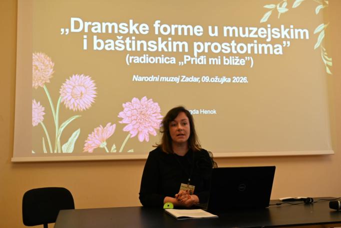 U ponedjeljak,9.3. i u utorak, 10.3 u prostoru Kneževe palače održan je stručni skup/edukacija „Dramske metode za baštinske pedagoge“ za sve djelatnike u muzejima, arhivima, knjižnicama i drugim ustanovama koje se u svom radu fokusiraju na rad s posjetiteljima. Edukaciju su organizirali Narodni muzeja Zadar (Pedagoško-andragoški odjel) uz suorganizatora udruge ICARUS Hrvatska. Na stručnom skupu svoje metode i znanje, sudionicima su prenijeli: Magda Henok, učiteljica, lutkarica i dramska pedagoginja (osnovna škola Veliko Trgovišće), Malina Zuccon Martić, umirovljena muzejska savjetnica, Silvia Vrsalović, viša kustosica pedagoginja (Etnografski muzej Zagreb), Jelena Kovačić, sveučilišna specijalistica dramske pedagogije (Kulturni centar Travno) i Ana Dalbello, teatrologinja (udruga Teatar od soli). Stručni skup su otvorile Željana Buljat, pripovjedačica i Sanja Grgina, pripovjedačica, lutkarica, glumica (udruga Besida) koje su na zanimljiv i poučan način dale uvodni prikaz o pripovijedanju kao vještini i značaju pripovijedanja u prenošenju znanja, a svojim prikazom „Male od Caske“ zaintrigirale sve sudionike. U dva dana trajanja stručnog skupa predavanja i radionice su poslušali njih 30 iz Zadra, Splita, Šibenika, Kaštela, Zagreba, i to djelatnici muzeja, knjižnica, odgojno-obrazovnih institucija što pokazuje kako je potreba za organiziranjem edukacija i stručnih skupova potrebna. Sudionici su se upoznali s različitim dramskim metodama primjenjivim u radu s posjetiteljima i to na aktivan način, sudjelujući u svim radionicama. Plesali su, glumili, improvizirali i zabavljali se uz obavezno pisanje bilješki da ne zaborave sve što su naučili.
