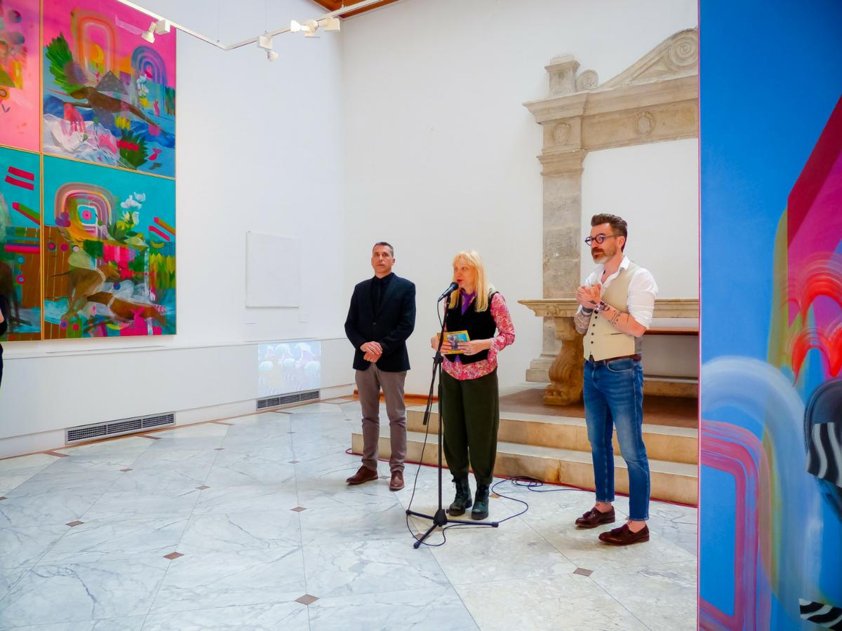 Kustosica izložbe dr. art. Marija Šarić-Ban predstavila je autora izložbe akademskog slikara Zorana Šimunovića. U ime županije izložbu je otvorio pročelnik županijskog Upravnog odjela za obrazovanje, kulturu i šport Ivan Šimunić. Nakon svečanog otvorenja izložbe održao se razgovor sa umjetnikom za sve prisutne posjetitelje, kao i učenike Škole primijenjene umjetnosti i dizajna.