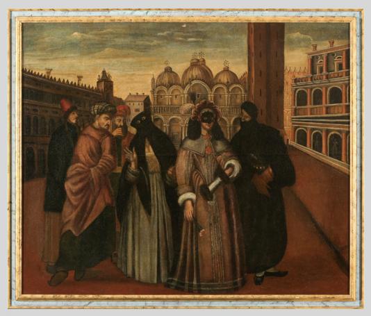 Nepoznati mletački slikar; Krabulje na trgu sv. Marka; konac 17. st. (?); ulje na platnu, 118 x 143 cm; inv. br. 33;